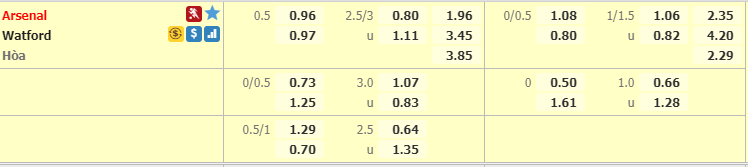 Nhận định kèo tài xỉu Arsenal vs Watford