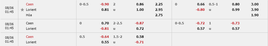 Trong khi đó, Lorient là đội bóng có lối chơi khá tốt vào lúc này. Đội bóng này cũng đã khởi đầu rất suôn sẻ ở giải Hạng 2 Pháp năm nay. Lorient đã có chiến thắng 3-0 trước Paris FC ngay trên sân nhà. Trong 10 trận đấu gần nhất thì đội bóng này đã giành chiến thắng 4 trận, hòa 4 trận và chỉ để thua 2 trận. Thậm chí Lorient cũng đang chơi khá tốt trên sân khách. Đội bóng này đã bất bại trong 4 trận sân khách liên tiếp gần đây, trong đó có 2 chiến thắng. Với thế kèo Caen chấp 0-0.5, worldcup888.com đã tham khảo ý kiến các chuyên gia bóng đá quốc tế và họ cho rằng nên chọn Lorient ở trận đấu này.