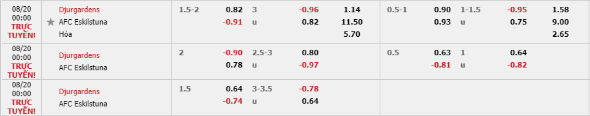 Nhận định kèo châu Á, kèo chấp Djurgardens vs AFC Eskilstuna