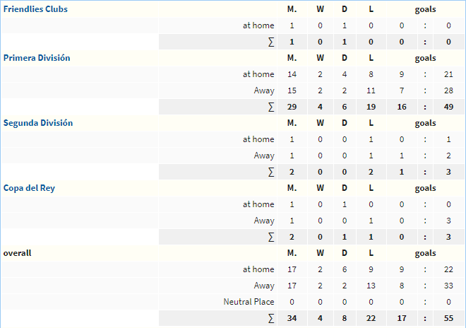 – 34 trận đối đầu: Getafe thắng 4, hòa 8, thua 22, ghi 17 bàn, thủng lưới 55 bàn