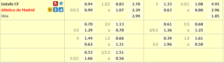 Nhận định kèo châu Á, kèo chấp Getafe vs Atletico Madrid