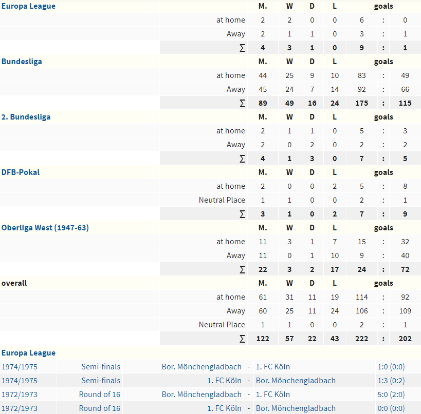 Gladbach hiện tại đang đứng thứ 5 trên bảng xếp hạng với 46 điểm, một thành tích đáng chú ý. Trong 10 trận đối đầu trước đây, họ có đến 6 lần giành được cho mình chiến thắng trước đối thủ này. Trong số đó, có duy nhất 1 trận họ thắng với cách biệt 2 bàn trở lên. Tuy nhiên, ở trận lượt đi, họ thắng đối thủ này ngay trên sân khách. Trong 10 trận đấu gần đây nhất của mình, có 4 trận họ thắng với 3 trong số đó là những trận thắng cách biệt từ 2 bàn trở lên. Trên sân nhà, có đến 7/10 trận gần nhất họ thắng với đến 5 trong số đó họ thắng với cách biệt từ 2 bàn trở lên. Với thành tích đối đầu khá chênh lệch và phong độ hiện tại trên sân nhà, worldcup888.com đã tham khảo ý kiến chuyên gia quốc tế và cho rằng, khả năng Gladbach sẽ thắng kèo trong trận này trên sân nhà với một trận thắng đậm trước Cologne.