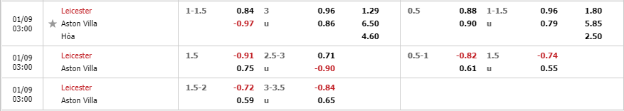 Trong khi đó, Aston Villa lại đang thi đấu không tốt vào lúc này. Đội bóng này đã có những trận đấu hết sức thất thường gần đây. Trong 5 trận đấu gần nhất thì Aston Villa đã giành chiến thắng 2 trận và đã để thua đến 3 trận. Đáng chú ý là đội bóng này thường chơi rất tệ hại trên sân khách. Trong 5 trận sân khách gần đây thì Aston Villa đã để thua đến 4 trận. Với thế kèo Leicester City chấp 1-1.5, worldcup888.com đã tham khảo ý kiến các chuyên gia bóng đá quốc tế và họ cho rằng nên chọn Leicester City ở trận đấu này.