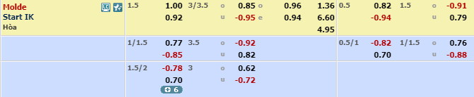 Nhận định kèo châu Á, kèo chấp Molde vs Start Kristiansand