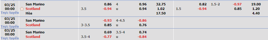 Nhận định kèo châu Á, kèo chấp San Marino vs Scotland