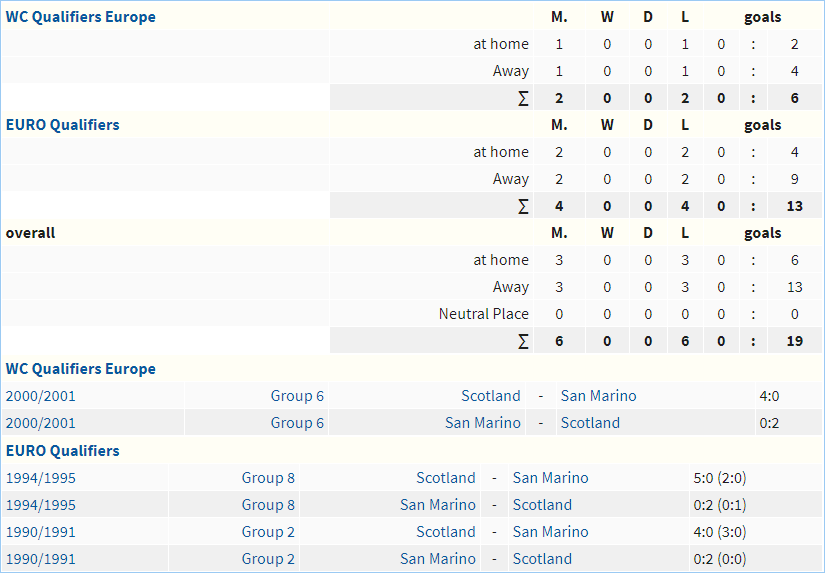 Lịch sử đối đầu San Marino vs Scotland