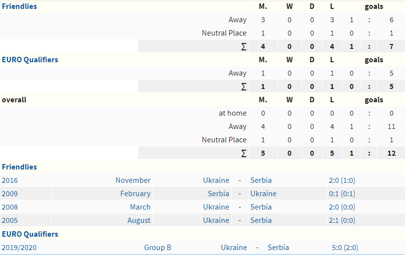 Lịch sử đối đầu Serbia vs Ukraine
