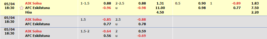 Trong khi đó, Eskilstuna đang xếp thứ 15 trên bảng xếp hạng với 4 điểm. Trong 5 trận đối đầu trước đây với Solna, có đến 4 trận họ bất bại trước đối thủ này với 2 trong số đó là những chiến thắng. Trong 10 trận đấu gần đây nhất của mình, có đến 6 trận họ bất bại. Và trong 4 trận Eskilstuna để thua, cũng có 2 trận họ không thua với cách biệt 2 bàn trở lên. Trên sân khách, có đến 7/10 trận gần nhất đội bóng này không để thua với 6 trong số đó là những trận hòa. worldcup888.com đã tham khảo ý kiến chuyên gia quốc tế và cho rằng, Eskilstuna nhiều khả năng sẽ thắng kèo trong màn đối đầu này khi dù để thua, họ cũng khó lòng thua đậm với cách biệt 2 bàn trở lên.