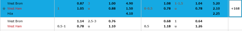 Trong quá khứ, West Ham không có thành tích quá nỗi trội khi làm khách trên sân của West Brom. Cụ thể trong 10 trận gần nhất làm khách trên sân của West Brom, West Ham chỉ giành 3 chiến thắng, 3 trận hòa và thua đến 4 trận. Nhưng nên nhớ đây là trận đấu mà West Ham chấp kèo cao nhất trong lịch sử khi làm khách trước West Brom. worldcup888.com tham khảo chuyên gia quốc tế và họ cho rằng với thế kèo hiện tại, lựa chọn West Ham vẫn an toàn hơn.