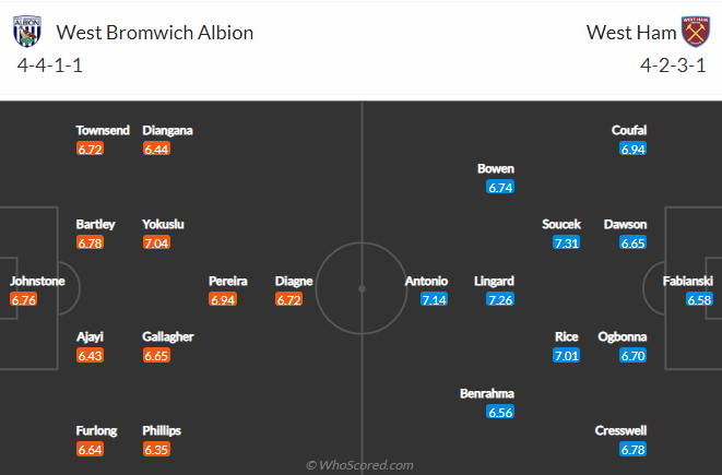 Đội hình dự kiến giữa hai đội West Brom vs West Ham
